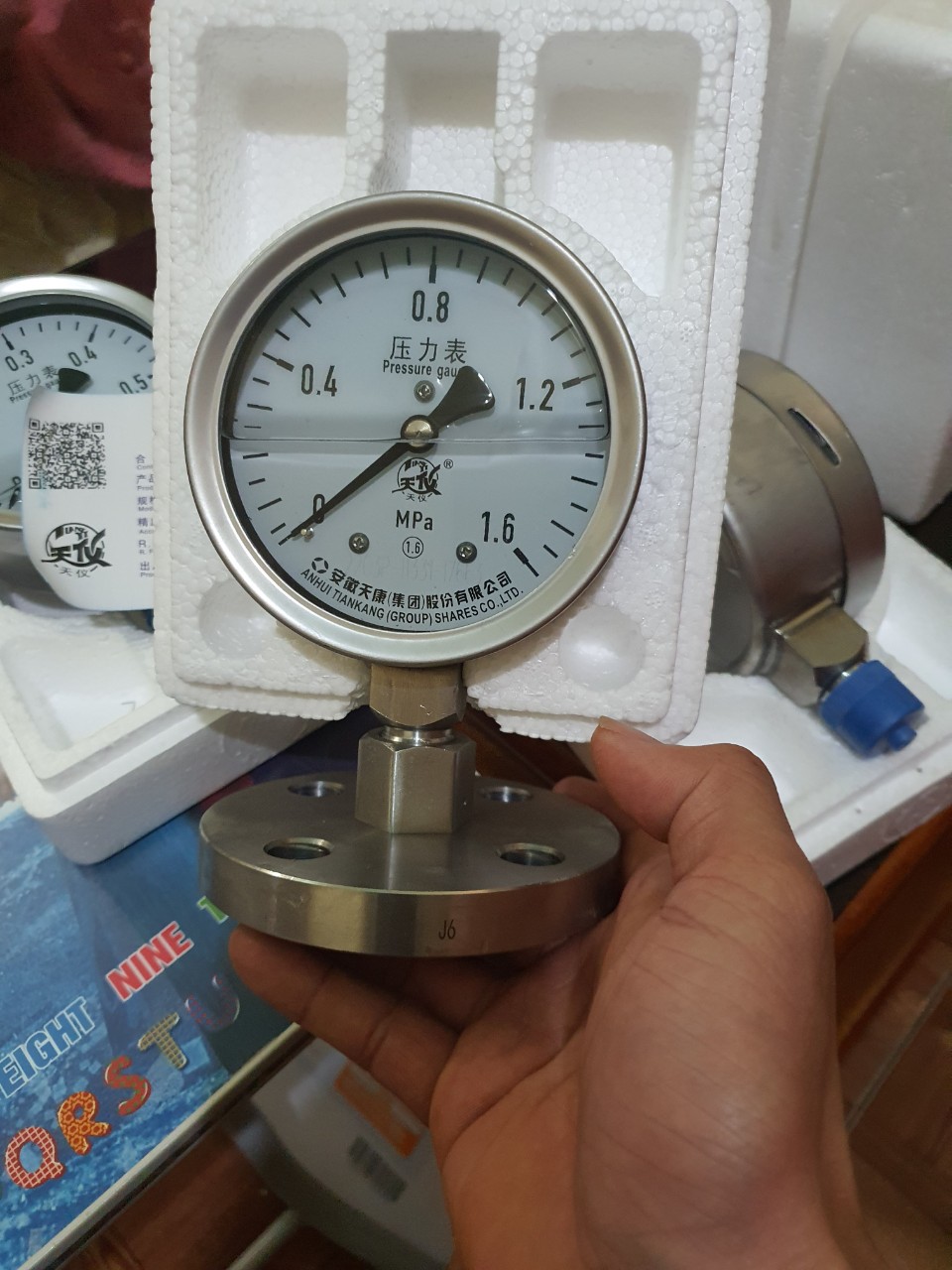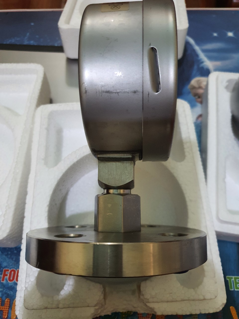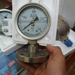 Đồng hồ áp suất màng dầu YNMF-100B được sản xuất để chống chịu được ăn mòn công nghiệp.